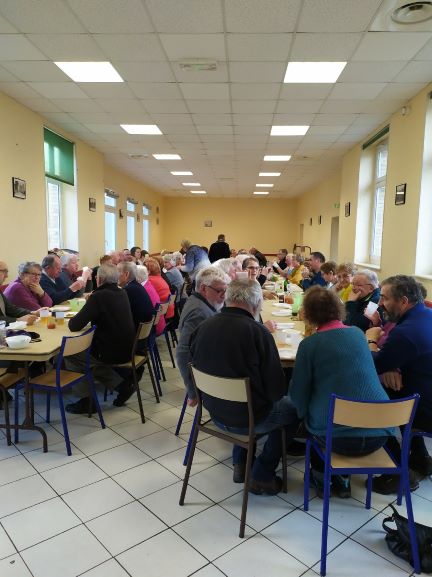 malheureusement le temps n'était pas avec nous, beaucoup de pluie donc 57 de nos adhérents ont joué à des jeux de societé, jeux de cartes, vers 16h00, nous avons dégusté des gâteaux confectionnés par Michèle, des chouquettes achetées par Josiane, des crêpes que nous avions commandées à "La Galette d'ALENCON" et des succulentes confitures de Michelle (fraises poivre épices, clémentines épices, confiture d'automne, et chocolatine, accompagnées d'un bon cidre, vin rosé, quoi de mieux pour passer un bon moment de détente, de partage dans une ambiance chaleureuse, bref l'esprit LSR nous a accompagné tout au long de cet après midi..
